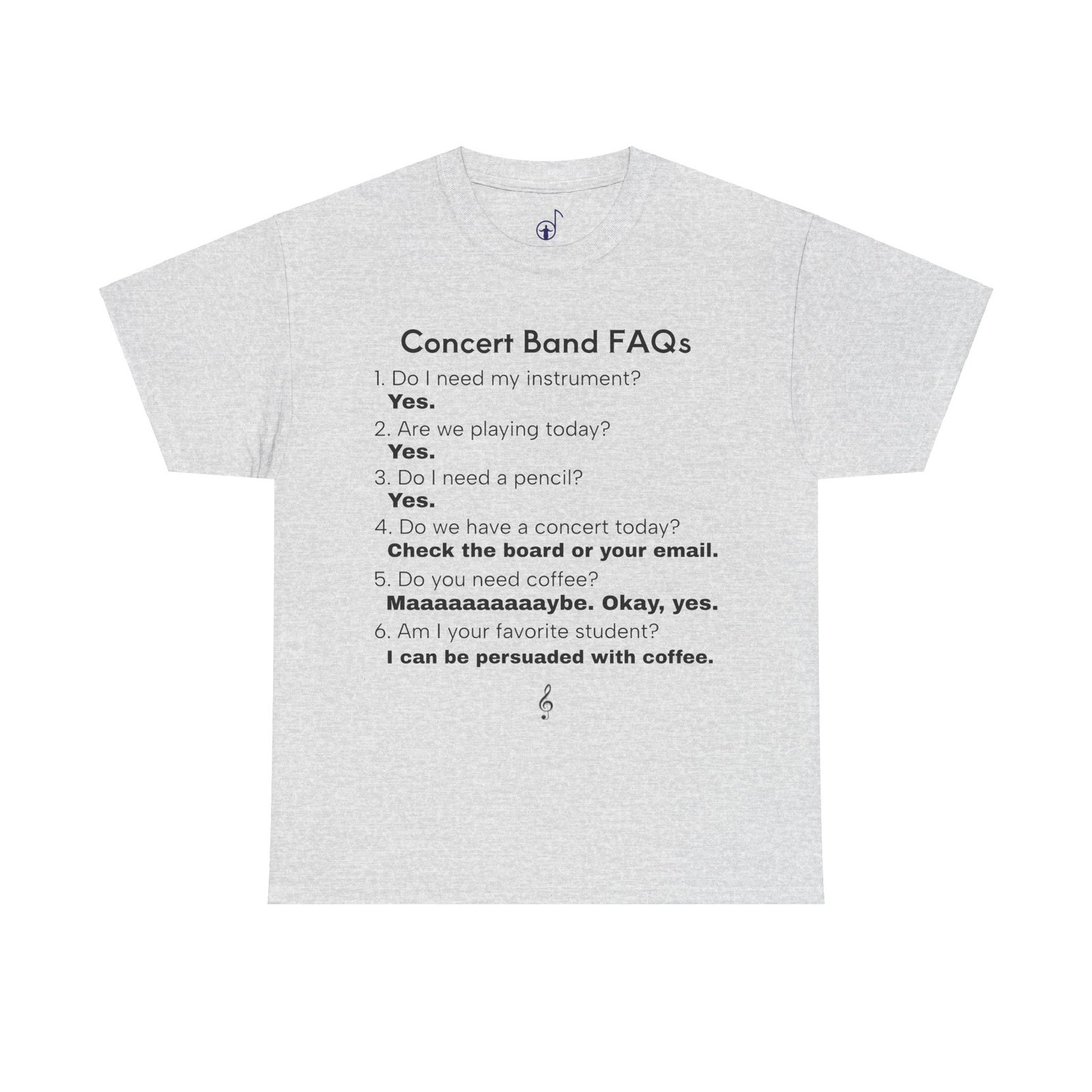 Concert Band FAQs Unisex Heavy Cotton Tee, Musician Gift, Band Geek Shirt, Music Lover Graphic Tee, Funny Music Teacher Shirt